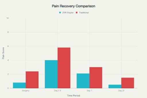 - Reduced Bleeding: Excessive bleeding triggers inflammatory responses that intensify post-operative pain. ZSR's simultaneous cutting and stapling dramatically reduces bleeding from significant amounts with traditional methods to "extremely few, almost no" instances. Less bleeding means less inflammation and pain.